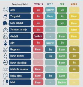Ne yazık ki bu hastalıktan dolayı hayatını kaybedenleri üzüntü ile okuduk; vefat edenlere rahmet, ailelerine de sabır diliyorum. Bazı günler benzer korkulara kapılsam da sağlıkla ve kalıcı hasarsız atlattığımıza şükür ediyorum. Ben ilk zamanlar soğuk algınlığı zannettiğim için sanırım biraz zaman kaybettim. O nedenle, Prof. Dr. Mustafa Özdoğan’ın internet sitesinde denk geldiğim bir tanı ayırıcısını sizinle de paylaşmak istiyorum. Hasta birine, erken teşhiste sadece bir gün bile faydam olabilirse ne mutlu bana!