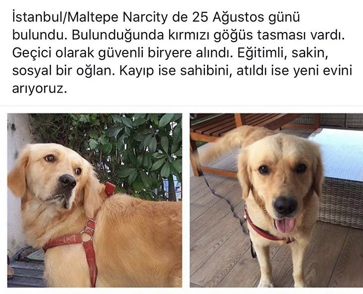 Birkaç gün sonra muhtemelen saate bakmak ya da arayan olup olmadığı kontrol etmek için telefonumun ekranına baktığımda aynı uygulama yine açık kalmıştı ve yine aynı dili dışarıda sarı köpek, yine kapkara gözleri dikmiş bana bakıyordu. Yine! Elimdeki tostu yarım bıraktım ve beş dakika içerisinde altımda pijama şortum, ellerim tost kokarken, daha sonra hayatımda kocaman hatırası olacak ilan sahiplerinin (canım Melda ve eşi Hakan abi) evlerine yol aldım.